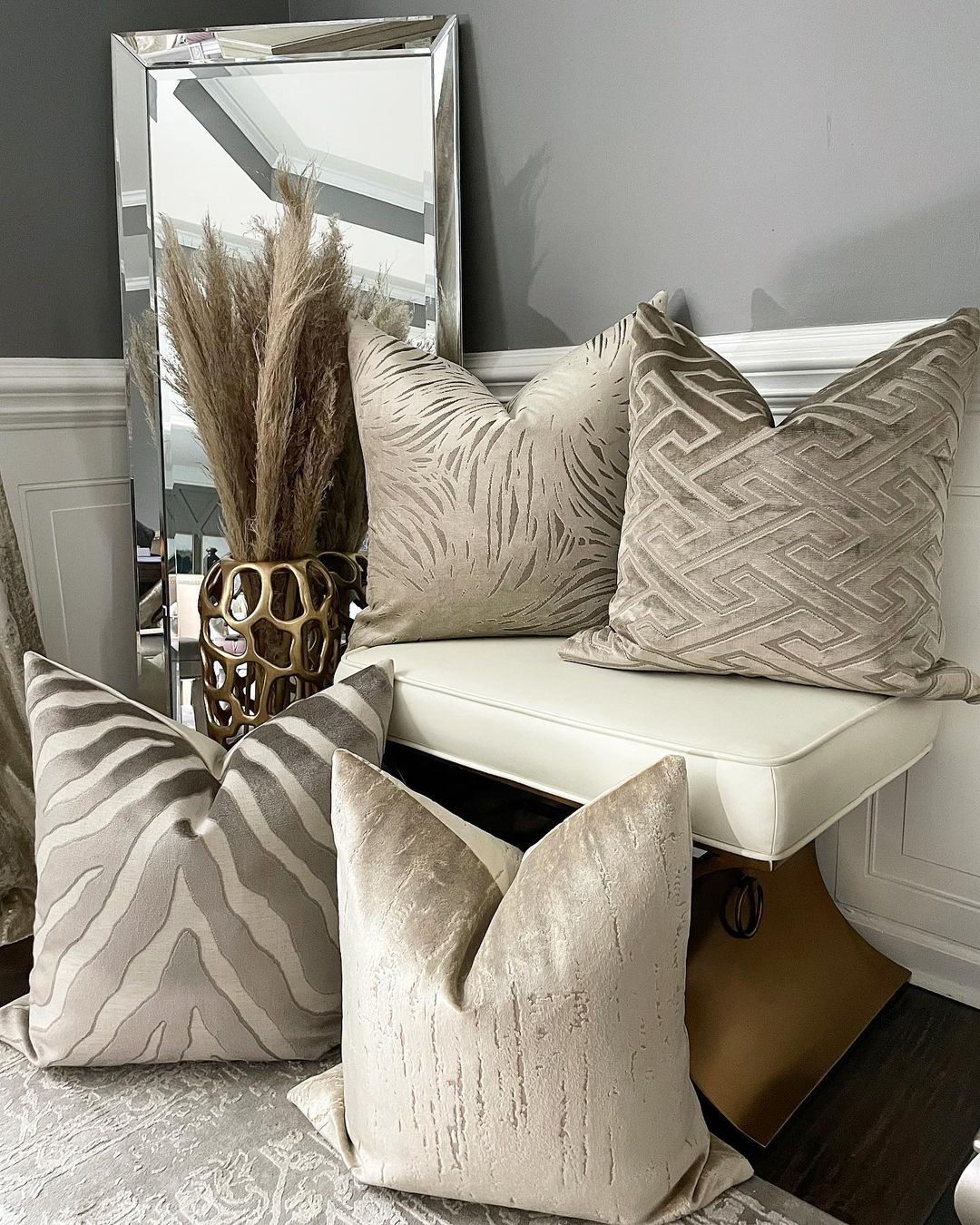 Also, using throw pillow covers in coordinating colors also makes it easier to clean them often, especially if they are machine-washable – as you won’t need to worry about dark dyes mixing in with lighter whites.